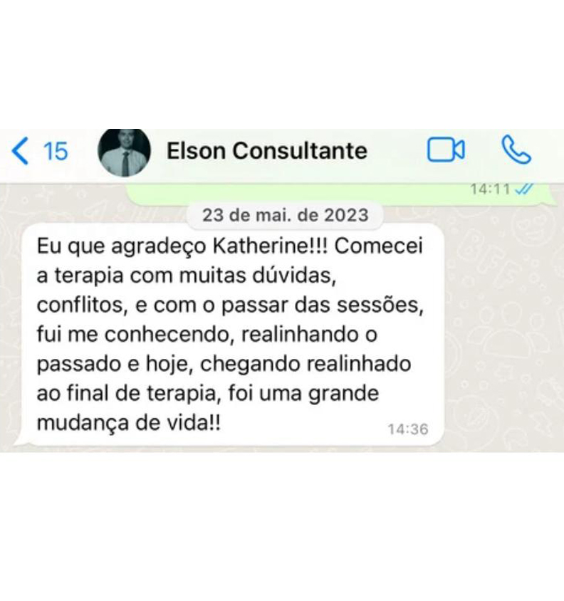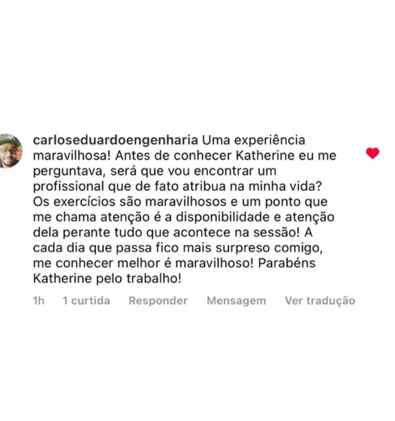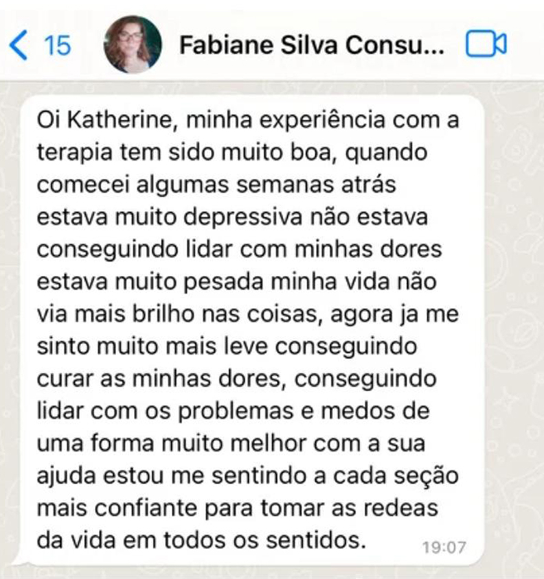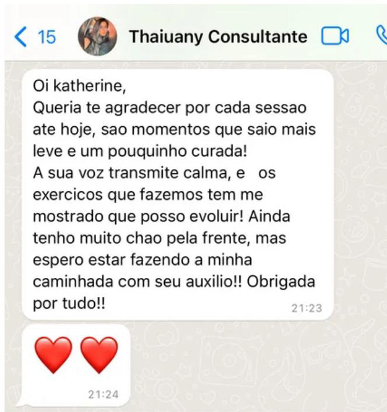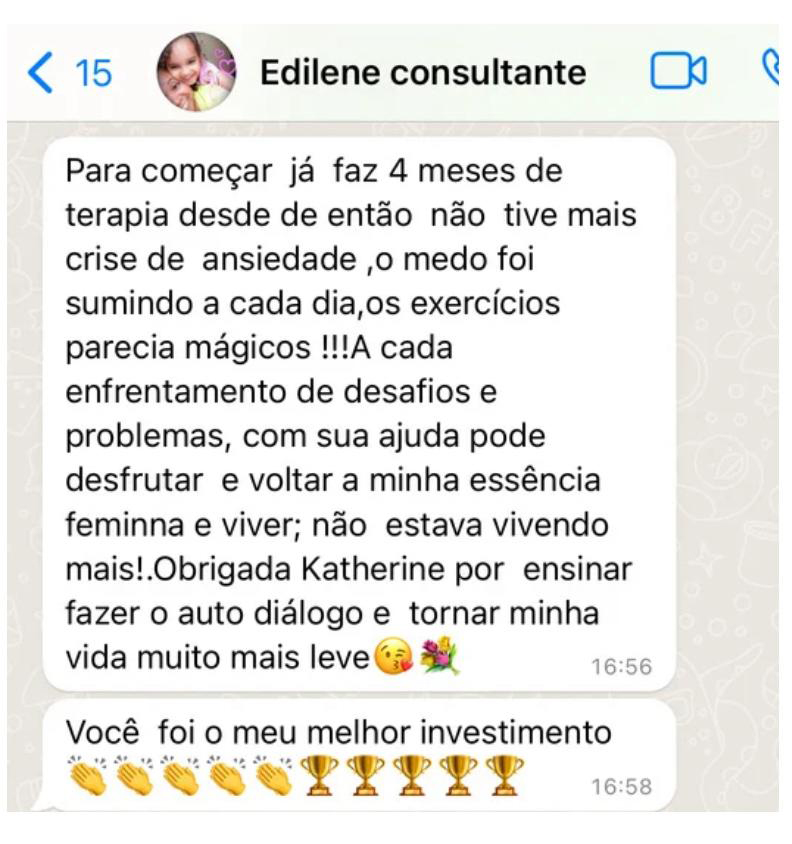 Se necessário também faremos alguns exercícios (é o diferencial da terapia com a Katherine), esses exercícios te ajudarão a alcançar os resultados de maneira mais rápida.